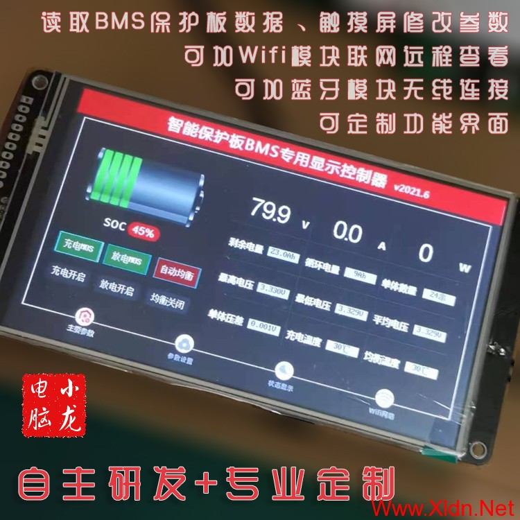 完全自主研发:显示屏功能、界面、协议都可以定制,可定制读其他保护板或其他带协议的设备数据